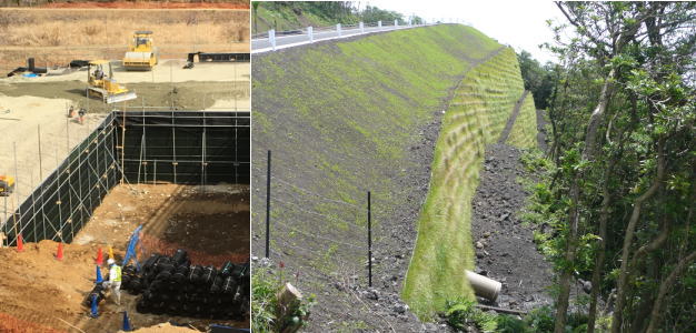 補強土・法面保護等の最適提案、設計 人類悠久の歴史からも見える土留めの技術。現代の土木技術から最適なご提案を致します。 ・補強土壁工法 ・EPS工法 ・ジオテキスタイルを用いた補強土、軟弱地盤対策全般 ・法面防護対策全般